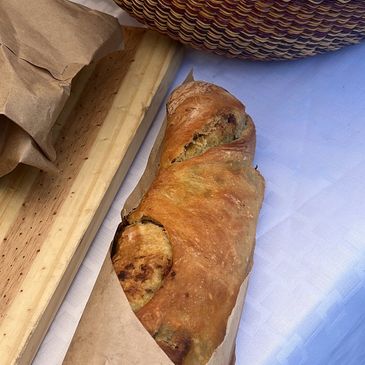 Infused with minced garlic and fresh basil this artisan bread is bursting with flavor
