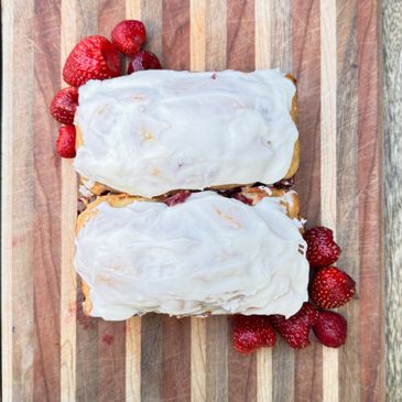 Fresh local strawberries with swirls of cream cheese instead and with a cream cheese glaze