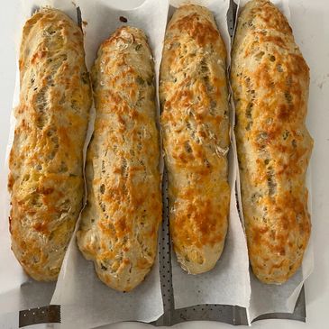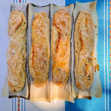 Crunchy outside and a chewy inside this savory bread goes with everything!
